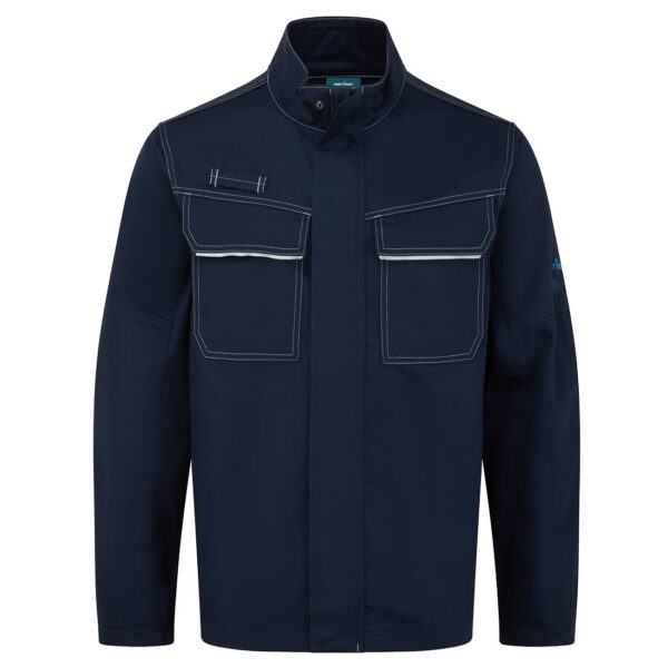 Die hitzebeständige Jacke ist in den Farben Navy und Orange erhältlich. Sie ist in den Größen S bis 5XL verfügbar, um eine optimale Passform für jeden Träger zu gewährleisten.