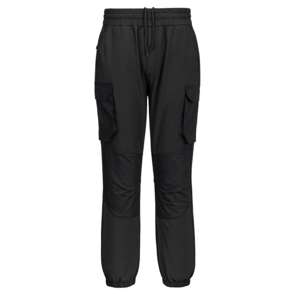 Die Jogginghose ist mit einer Reihe von funktionalen Details ausgestattet, die den Arbeitsalltag erleichtern. Die doppellagigen, verstärkten Knie bieten zusätzlichen Schutz und Haltbarkeit, während die vorgeformten Knie die Bewegungsfreiheit erhöhen. Der elastische Bund mit Gummizug sorgt für einen sicheren und bequemen Sitz. Zahlreiche Taschen, darunter zwei Seitentaschen, eine Gesäßtasche mit Reißverschluss und zwei seitliche Cargo-Taschen mit Reißverschluss, bieten ausreichend Stauraum für Werkzeuge, Stifte und andere wichtige Utensilien. Die Hose ist an allen Belastungspunkten verriegelt, um eine lange Lebensdauer zu gewährleisten.