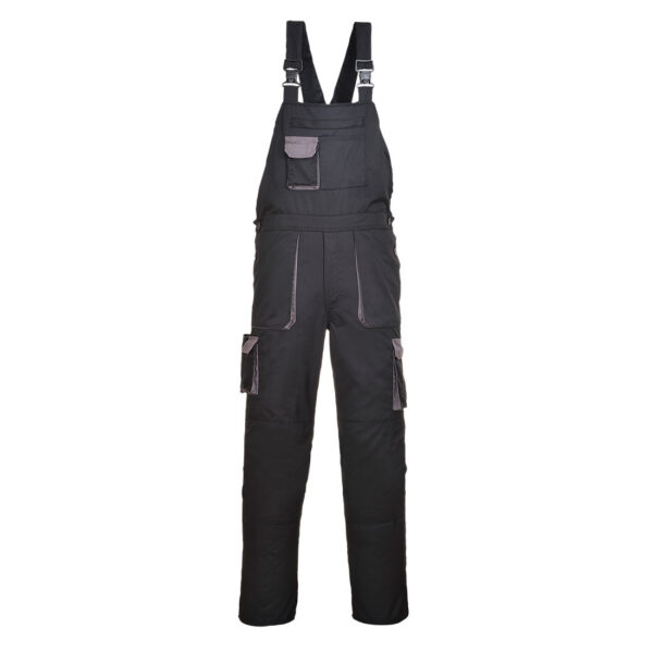 Die Latzhose besteht aus Portwest Texo Cotton Rich Gewebe, einer Mischung aus 60% Baumwolle und 40% Polyester mit einem Gewicht von 245g/m². Dieses Material bietet eine gute Balance zwischen Komfort und Strapazierfähigkeit. Der hohe Baumwollanteil sorgt für ein angenehmes Tragegefühl, während der Polyesteranteil die Hose widerstandsfähiger gegen Abnutzung und Formverlust macht. Die Latzhose ist einlaufgeschützt, sodass sie auch nach mehreren Waschgängen ihre Form behält.